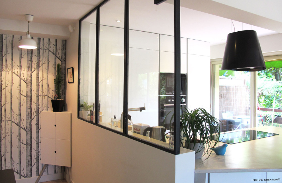 Cuisine avec verriere interieure pour restructurer l espace.